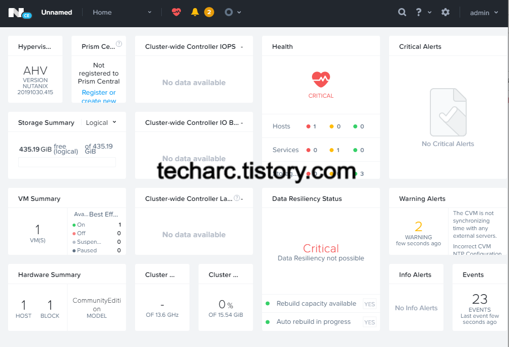 사실 Single Cluster 구성은 개인적으로 느끼기에 HCI라고 보기 어렵지만